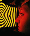 It was like sticking you head in a giant kaleidoscope. Heres a picture I found of a lady's head in one. Its called an Orbscan machine: